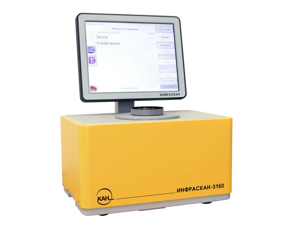 ИНФРАСКАН-3150 анализирует широкий спектр показателей качества (белок/протеин, влага, количество и качество клейковины (ИДК), жир/масличность, водопоглотительная способность и др.). Предусмотрена возможность расчёта аминокислотного состава комбикормовых составляющих. Работает с пробами анализируемого вещества в виде размола. Имеет калибровку для оценки влажности и белка в цельном зерне пшеницы.