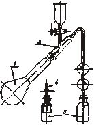Аппарат дистилляционный для определения мышьяка Состоит из колбы 1 вместимостью 250 мл, насадки 2 с краном и каплеуловителями,двухсклянок 3 с пробками и трубки 4. Стеклянные изделия крепятся на штативе. Габаритные размеры, мм — 30х360х505 Шифр — 1426 Возможна поставка комплекта стекла без штатива. Шифр комплекта стекла — 2187. |