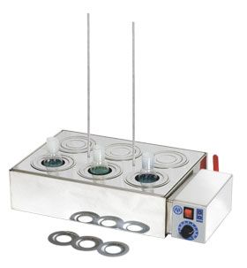 - Система из 4-х концентрических колец позволяет размещать в ванне различные колбы объемом до 1 л, стаканы, чашки для выпаривания и т.д.
