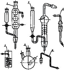 Комплект стеклоизделий к аппарату для определения микропримесей серы Состоит из холодильника 1, дефлегматора 2, абсорбера 3, колбы 4, штуцера 5 и трубки 6. Изделия имеют следующие шлифы конические взаимозаменяемые по ГОСТ 8682-93: холодильник — муфта КШ 14/23, керн КШ 29/32; |