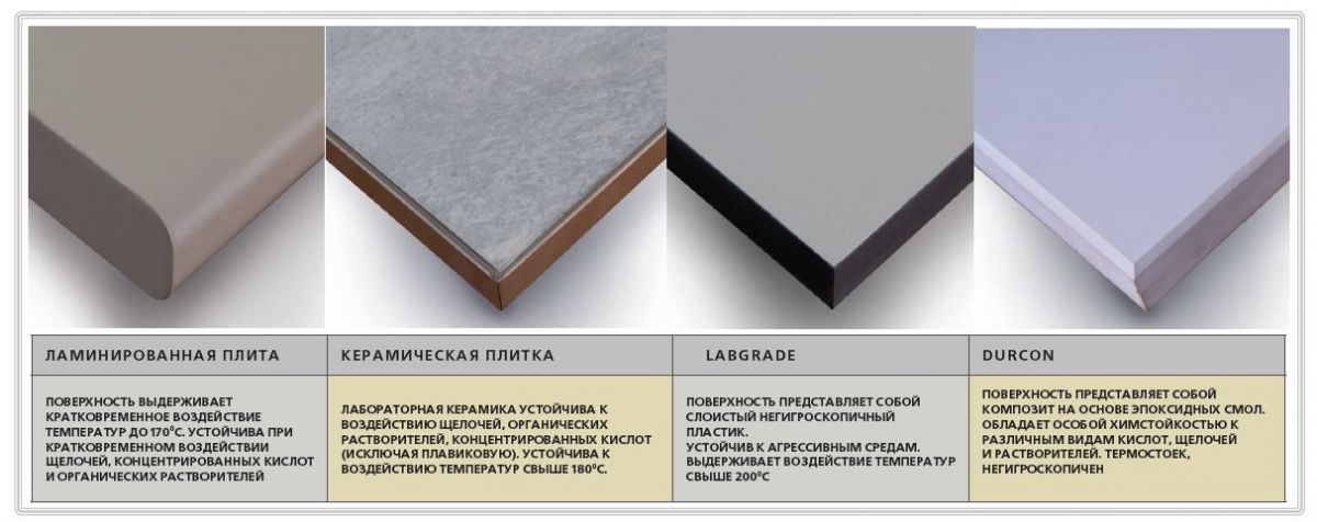 Материалы рабочих поверхностей мебели серии ПРАКТИКА