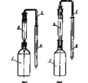 Прибор для определения пределов кипения Изготавливается из термостойкого стекла. Состоит из колбы с отводом 1, холодильника ХПТ 2, алонжа 3, соединенных между собой с помощью шлифов конических взаимозаменяемых. Шлифовые соединения закреплены пружинками 4. Прибор комплектуется трубкой резиновой медицинской 5. Габаритные размеры, мм — 355х550х64. Шифр — 1818 |