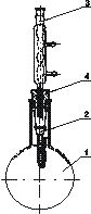 Прибор для определения содержания эфирного масла методом 1 ТУ 4321-004-07609129-00 Предназначен для определения содержания эФирного масла в растительном сырье по методу Гинзберга путем перегонки его с водяным паром и последующего измерения объема полученного масла, выраженного в процентах по отношению к абсолютно сухому сырью. Методики проведения испытания и расчета по ГОСТ 24027.2-80. Прибор состоит из колбы 1, приемника 2 и холодильника 3, вставленного в колбу через резиновую пробку 4. Условная вместимость колбы, мл — 1000 Шифр — 1756 |
