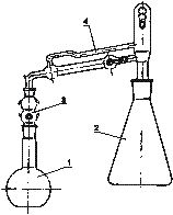 Прибор для отгонки спиртосодержащих жидкостей Предназначен для отгонки спиртосодержащих жидкостей при изготовлении спиртоводочных изделий. Состоит из колбы плоскодонной 1 вместимостью 250 мл, алонжа 3, конденсатора 4 и колбы конической 2 вместимостью 1000 мл. Шифр — 1980 |