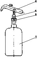 Прибор для отмеривания серной кислоты ГОСТ 6859-72 Состоит из склянки 1 и дозатора 2, соединенных между собой с помощью шлифа конического взаимозаменяемого КШ 19/26 по ГОСТ 8682-93 и закрепленных хомутиком 3 и пружинками 4. По просьбе потребителя возможна поставка комплекта стеклоизделий без металлических деталей. Номинальная вместимость дозатора, мл — 10. Шифр прибора — 1681 |