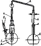Прибор для перегонки бензойной кислоты Предназначен для отгонки бензойной кислоты из продуктов переработки плодов и овощей водяным паром для последующего определения содержания бензойной кислоты фотометрическим методом по ГОСТ 28467-90. Состоит из сосуда для перегонки 1, вставленного в колбу двугорлую 2 вместимостью 1000 мл, делительной воронки с краном 3 вместимостью 100 мл, дефлегматора 4, трубки соединительной с каплеуловителем 5, холодильника 6, колбы мерной 7 вместимостью 100 мл и воронки стеклянной 8. Проведение испытания по ГОСТ 28467-90 Габаритные размеры, мм — 131х500х940 Шифр — 1744 |
