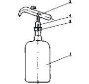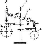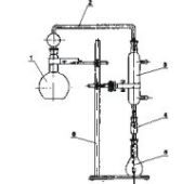 Прибор для перегонки кислот Состоит из испарительной колбы 1 вместимостью 500 мл, насадки 4, холодильника типа ХПТ 3, приемной колбы 2 вместимостью 250 мл, закрепленных на штативе 5 с помощью держателей. Стеклянные детали соединяются между собой с помощью шлифов конических взаимозаменяемых по ГОСТ 8682-93, закрепленных хомутами и пружинами. Шифр — 2022. |