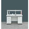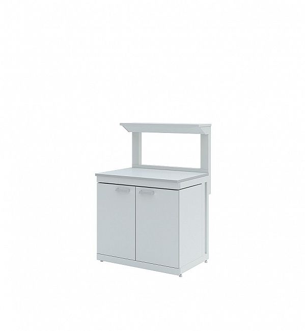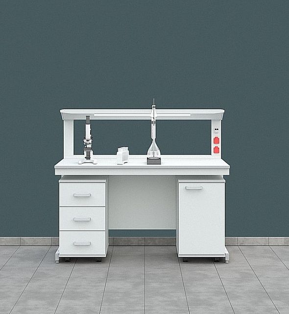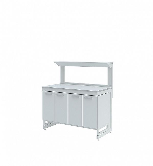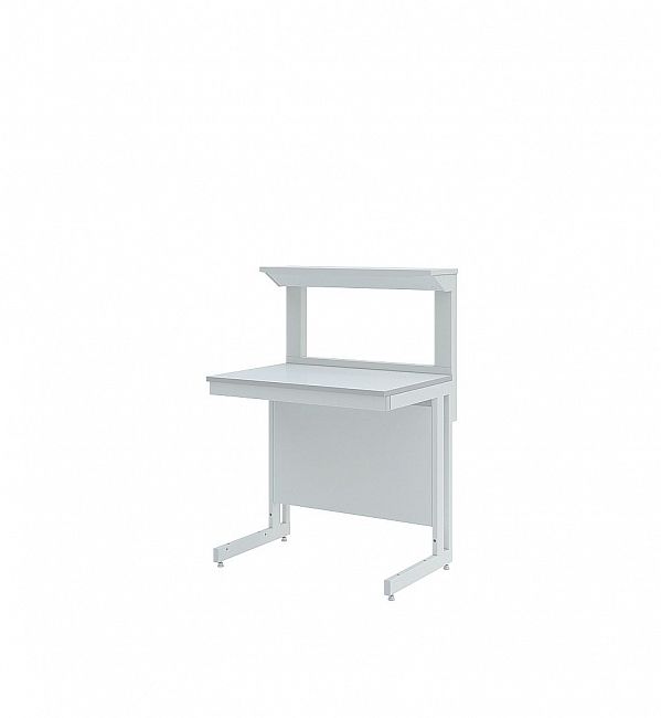 Стол лабораторный состоит из прочного сборно-разборного металлического каркаса с нанесением эпоксиполиэфирного покрытием серого цвета, столешницы и полки из стали с полимерным покрытием серого цвета. Для компенсации неровностей пола в каркасе предусмотрены регулируемые опоры (0-30 мм).