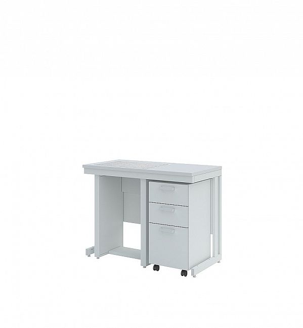 Стол лабораторный состоит из прочного сборно-разборного металлического каркаса с нанесением эпоксиполиэфирного покрытия серого цвета, столешницы с вырезом под гранитную плиту (материал – на выбор) и стола весового СВ. Для компенсации неровностей пола в каркасе предусмотрены регулируемые опоры (0-30 мм).