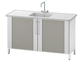 Стол-мойка ЛАБ-PRO-МО 150.60.90 ЕСтолы-мойки ЛАБ-PRO-МО (с одинарной мойкой)илиЛАБ-PRO-МД (с двойной мойкой)могут размещаться отдельно или служить функциональным дополнением островных столов. Фасады выполнены из абсолютно влагостойких и коррозионно не активных материалов. В столах-мойках используются раковины из различных материалов. По дополнительному заказу поставляются навесные стеллажи для сушки посуды (для любых моек), опорные полипропиленовые стеллажи ЛАБ-PRO-ОСС(только для моек из полипропилена и нержавеющей стали) и брызгозащитные задние экраны ЛАБ-PRO-ЭБЗ и боковые экраны ЛАБ-PRO-ЭББ (только для моек из полипропилена и нержавеющей стали). |