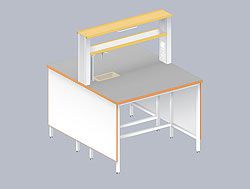 Все столы оснащены надстольными стеллажами, в которых размещаются полки и электрика. Особенности: