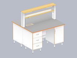 Все столы оснащены надстольными стеллажами, в которых размещаются полки и электрика. Особенности: