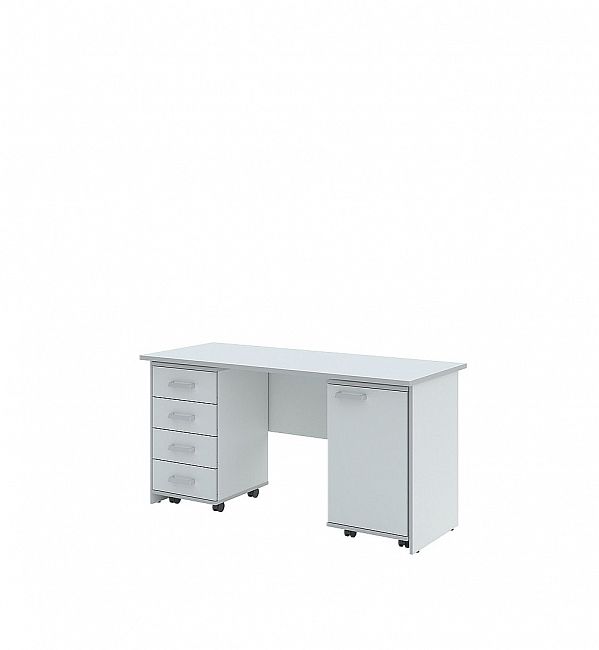 Стол письменный состоит из боковин из ЛДСП с регулируемыми опорами, царги и столешницы из ЛДСП 16 мм. Цвет белый или серый.