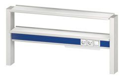 Стойка-стеллаж ЛАБ-PRO-СтОн-150Стеллаж к островному столу. Стеллажи к пристенным и островным столам ЛАБ-PRO-Ствыполняются из специального алюминиевого профиля, который одновременно служит кабель-каналом для подводок холодной и горячей воды, газовых трубопроводов и электрических сетей. На стеллажах укреплены полки из ПВХ с алюминиевыми бортиками безопасности,брызгозащищенные розетки и выключатели. Высокие стеллажи к пристенным столам имеют приспособления для крепления к стене. |