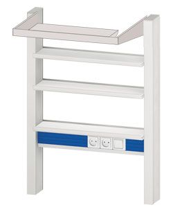 Стойка-стеллаж ЛАБ-PRO-СтПв-90Стеллаж к пристенному столу. Стеллажи к пристенным и островным столам ЛАБ-PRO-Ствыполняются из специального алюминиевого профиля, который одновременно служит кабель-каналом для подводок холодной и горячей воды, газовых трубопроводов и электрических сетей. На стеллажах укреплены полки из ПВХ с алюминиевыми бортиками безопасности,брызгозащищенные розетки и выключатели. Высокие стеллажи к пристенным столам имеют приспособления для крепления к стене. |