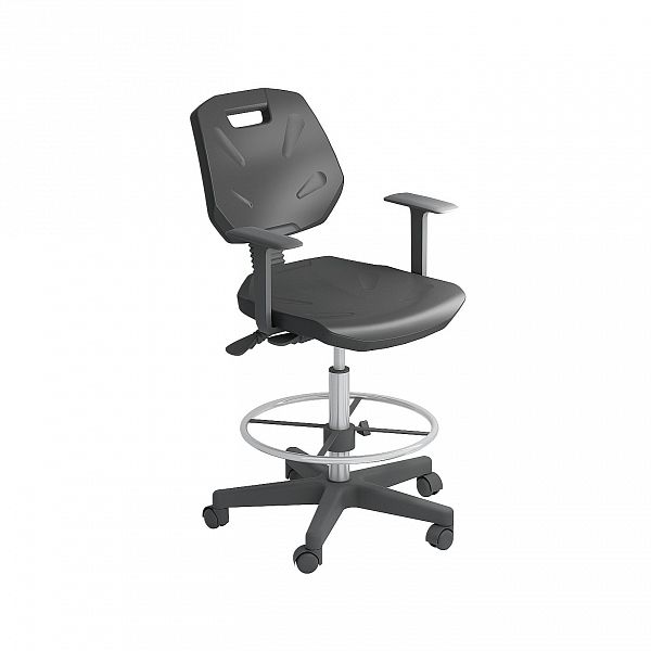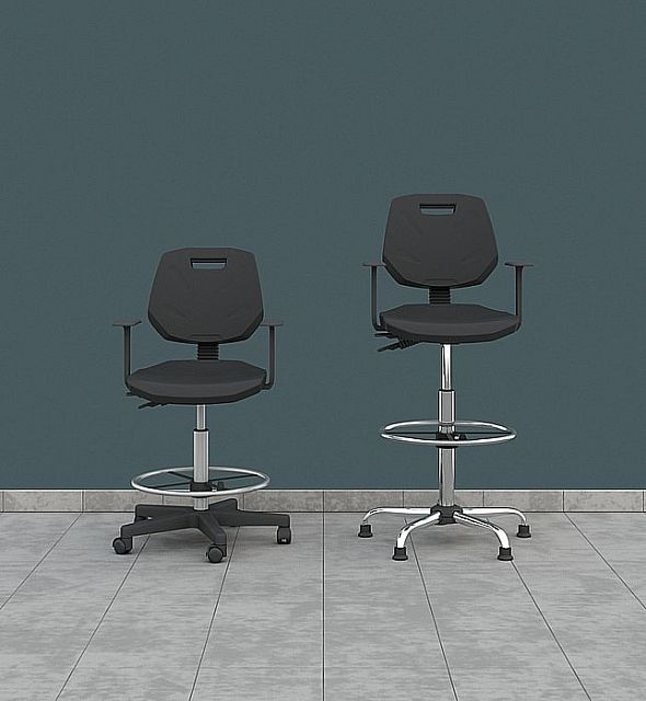 Подходит для комфортного расположения за столами высотой от 750 до 900 мм. Возможна замена стандартного газлифта на высокий, что позволит изменить диапазон регулировки стула по высоте от 570 до 820 мм и использовать такой стул для работы за столами выше 900 мм. Допустимая нагрузка на изделие не должна превышать 120 кг. Размер сиденья - 455х440 мм, спинки - 410х370 мм.