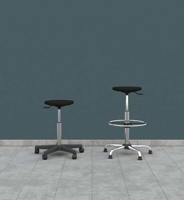 Подходит для комфортного расположения за столами высотой от 750 до 900 мм. Возможна замена стандартного газлифта на высокий, что позволит изменить диапазон регулировки стула по высоте от 570 до 820 мм и использовать такой табурет для работы за столами выше 900 мм. Допустимая нагрузка на изделие не должна превышать 120 кг. Диаметр сиденья – 340 мм.