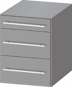 Тумба навесная ЛАБ-PRO-ТЯ3-40-50 Тумба навесная с 3 ящиками. Тумбы навесные унифицированы ко всем рабочим, пристенным и островным столам, удобно крепятся на задние штанги и легко передвигаются. Дверки и выдвижные ящики, имеют бесшумные механизмы. Тумбы эргономично расположены и позволяют легко убирать пыль с пола. Корпус — меламин «серый кристалл». Окантовка АБС кромкой 3 мм. Особенности: