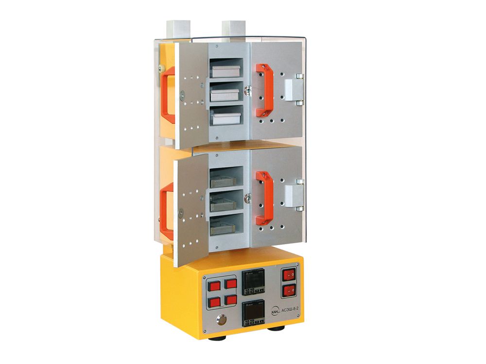- Возможность одновременного проведения определения влажности 12 проб. Каждая сушильная камера установки состоит из 6 независимых ячеек. В каждую ячейку можно поместить 2 бюксы. Общая вместимость Установки АСЭШ-8-2 – 24 бюксы.