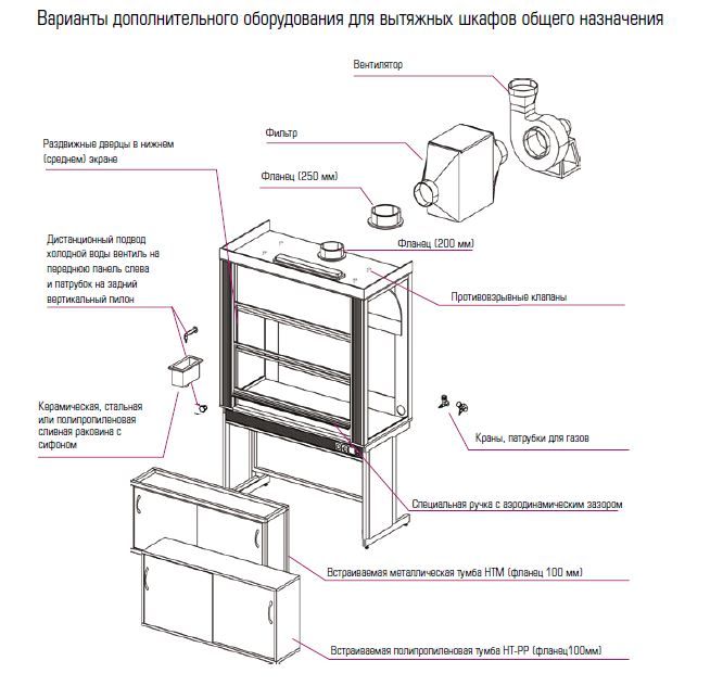 Варианты дополнительного оборудования для вытяжных шкафов общего назначения.
